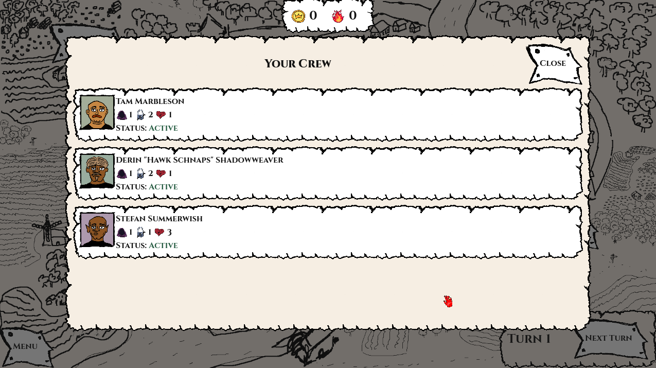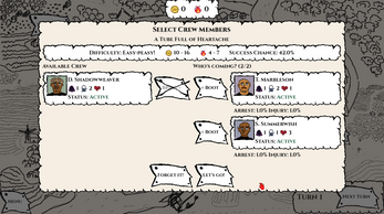 - You manage a crew of randomly generated characters.